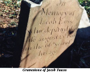 Another of the German families in the Sand Brook area was JacobFauss (1740-1806) and wife Margaret Space(1743-1830), both buried here, along with their son Samuel Fauss(1777-1831) who inherited the family farm, and his wife Mary Moore (1779-1871). Mary Moore was the daughter of Henry Moore and Mary Groff. Another son of Jacob and Margaret Space was John Fauss (1782-1825) who is here, but his wife, who outlived him by almost 30 years, is not.